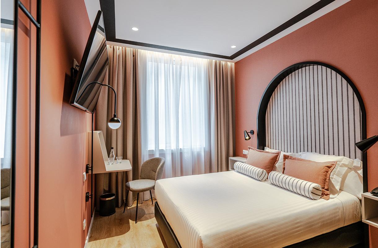Nuestras habitaciones en el Hotel Vincci Bonjardim ofrecen toda la comodidad y confort posibles. Cada espacio ha sido cuidadosamente diseñado para brindar una experiencia de alojamiento inigualable. La íntima Habitación Petite es perfecta para pocas noches o personas que viajan solas, mientras que nuestras habitaciones dobles y dobles con cama supletoria son ideales para viajeros que buscan más espacio. Con una decoración moderna y acogedora, todas las habitaciones cuentan con comodidades de alta calidad, desde su completo equipamiento hasta sus modernas instalaciones